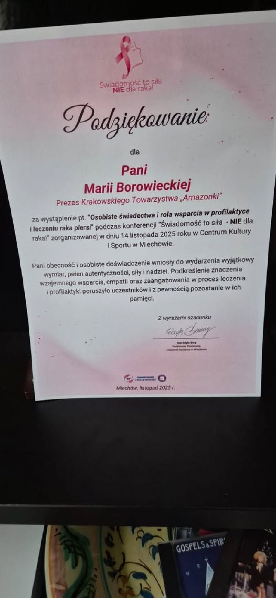 14 listopada 2025 w konferencji "Świadomość to siła- Nie dla raka" wzięły udział nasze Koleżanki Maria Borowiecka i Jagoda Doroz. Konferencja zorganizowana w Centrum Kultury i Sportu w Miechowie.